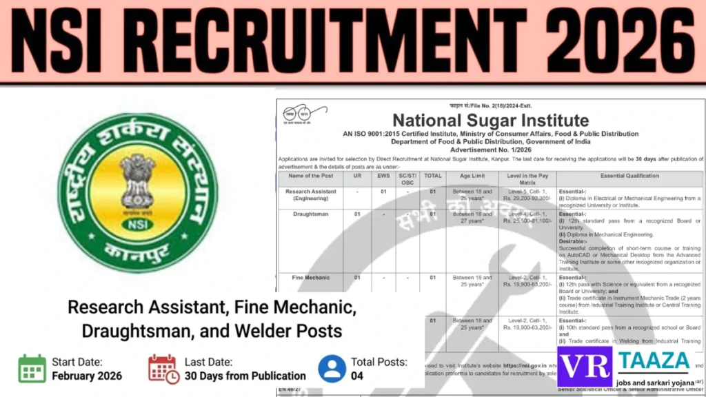 यदि आप केंद्र सरकार के अधीन एक प्रतिष्ठित संस्थान में नौकरी प्राप्त करना चाहते हैं, तो NSI भर्ती 2026 आपके