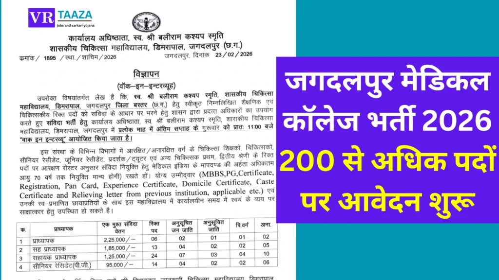 जगदलपुर मेडिकल कॉलेज भर्ती 2026: 200 से अधिक पदों पर आवेदन शुरू, योग्यता और आवेदन प्रक्रिया