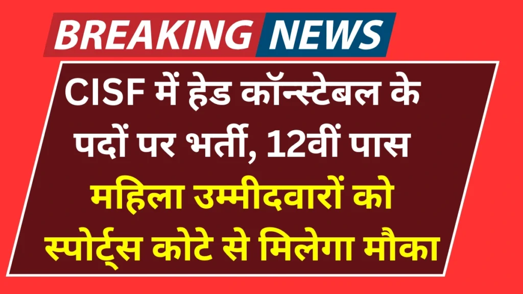CISF HC Recruitment 2025: केंद्र सरकार की सुरक्षा एजेंसी सेंट्रल इंडस्ट्रियल सिक्योरिटी फोर्स (CISF) ने महिला उम्मीदवारों के लिए हेड