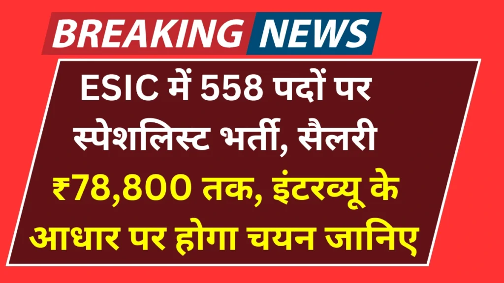 ESIC Recruitment 2025: कर्मचारी राज्य बीमा निगम (ESIC) ने चिकित्सा क्षेत्र में करियर बनाने की तैयारी कर रहे युवाओं के