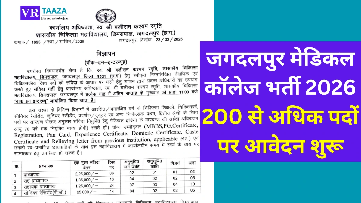 | भर्ती का नाम | जगदलपुर मेडिकल कॉलेज भर्ती 2026 |